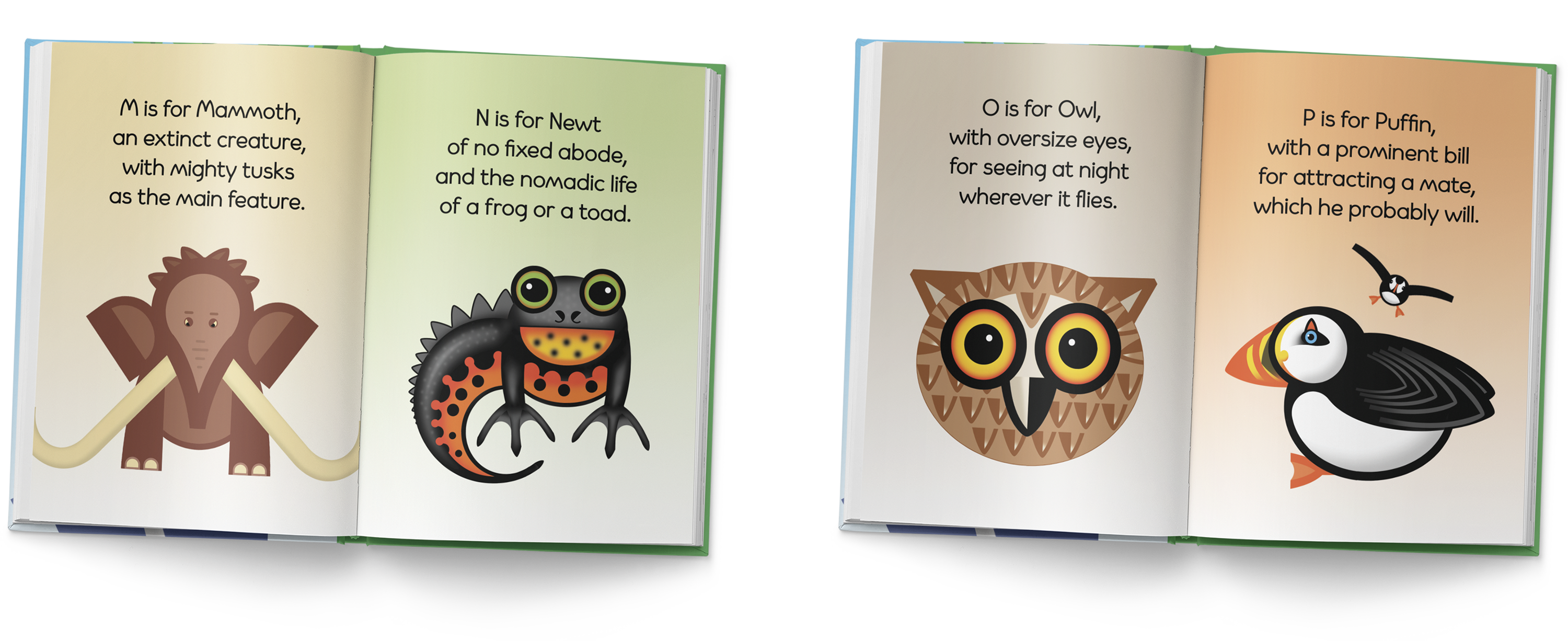 A 32-page Animal Verse Book employing the complete alphabet, with each page portraying a creature alongside complimentary verse.